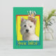 Invitez vos invités avec cette carte de voeux des montagnes occidentale lunatique de chien de Terrier. Le petit gâteau étant équilibré là-dessus est la tête, cette conception est sûre d'apporter un sourire et rit nerveusement ! Le BTW, cette conception a plusieurs versions, avec différentes couleurs d'arrière - plan. Il y a également une version de joyeux anniversaire.