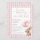 Cette charmante invitation au baby shower comporte un mignon petit lapin tenant des ballons et un arrière - plan rose en vichy. Conçu par Thisisnotme©