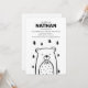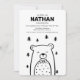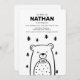 Le design minimaliste comprend un ours dans une cravate à arc dans la forêt. Customisez ces invitations pour tout événement.