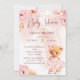Nous avons une invitation délicieuse avec un adorable et tendre ours en peluche habillé d'une robe exquise et somptueuse. Adorer sa tête est une fleur délicate. Toute l'illustration est réalisée dans des teintes douces de rose et de pêche, en utilisant la technique de l'aquarelle, créant une atmosphère d'élégance et de légèreté. L'invitation est encore renforcée par des fleurs charmantes et opulentes, ajoutant encore plus de charme au design. Ne manquez pas cet événement enchanteur !