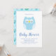 Invitation Petit Owl Baby shower Bleu Bird Boy