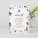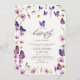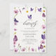 Une illustration d'aquarelle enchanteresse avec le thème "Petit Papillon", avec des papillons violets et des fleurs sauvages violets et roses dans un style mignon et adorable, décore cette invitation à la douche pour petite fille qui est parfaite pour une fête de printemps ou d'été.