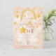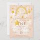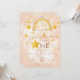 Invitation bohème premier anniversaire arc-en-ciel rose pastel, poussière magique et étoiles dorées brillantes. Cliquez sur le bouton "personnaliser davantage" si vous souhaitez réorganiser et formater le style et l'emplacement du texte.