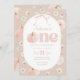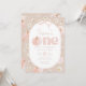 Un mignon citrouille ! Floral citrouille and bow Invitation à l'anniversaire de la première fille à thème avec arrière - plan neutre avec marguerites, citrouille et mignon arc rose.