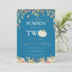 Cherchez-vous une invitation d'anniversaire sur le thème de l'automne qui est juste? Ne cherchez plus . Cette charmante invitation présente des feuilles et des citrouilles d'aquarelle fantaisie sur fond bleu automne.