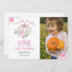 Notre petit Citrouille qui tourne une première invitation photo d'anniversaire avec de belles fleurs pastel d'automne et un citrouille blanc avec un joli arc rose coquette. Parfait pour le 1er anniversaire de la Fille cet automne.