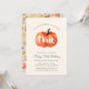 Invités Invitations à la salle de bain de votre petit un troisième anniversaire avec nos adorables invitations citrouilles. Le design est doté d'un citrouille orange aquarelle avec "trois" inscrit dans la typographie en écriture manuscrite blanche. Personnalisez avec les détails de votre première fête d'anniversaire en utilisant les champs fournis. Les invitations reviennent à un motif botanique d'automne festif.