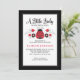 Un petit coccinelle est en route ! Jolie invitation baby shower rouge et noir coccinelle. Le dos de l'invitation est décoré avec un motif fleuri. Personnalisez-le pour votre baby shower. Conçu pour vous par Blackberry Boulevard.