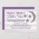Personnalisé cette petite invitation scintillante de baby shower d'étoiles pour votre baby shower de fille. C'est un thème amusant super mignon en violet et argent.