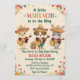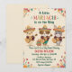Cette charmante invitation à une baby shower présente la phrase "Un petit Mariachi est en route" et trois animaux adorables (un lama, un âne et un chiot) portant des sombreros colorés et jouant de la guitare.