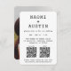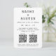 Cet invitation est de petite taille mais il est grand par sa simplicité moderne. Famille d'Invitations et amis à une célébration mariage tout simple et élégante avec une invitation tout-en-un 3.5"x5" unique avec code QR RSVP. Avec une seule carte, vous pouvez accueillir des invités mariages invitations à votre prochaine fête spéciale, fournir toutes les informations importantes (comme les directions, le registre, les chambres d'hôtel), et laisser le site Web organiser les rsvp's. Aucune carte de boîtier supplémentaire n'est nécessaire. L'image et le texte sont simples à personnaliser pour inclure tous les détails de votre choix. (CONSEIL EN MATIÈRE DE PLACEMENT D'IMAGE : Une façon simple de centrer une photo exactement comment vous voulez est de la rogner avant de la télécharger sur le site Zazzle.) Le design minimaliste moderne en noir et blanc comprend une photo du couple engagé, 2 codes QR personnalisés et une typographie vintage classique de machine à écrire. En scannant un code QR avec un appareil photo, les clients sont envoyés directement sur le site du mariage pour plus de détails et pour répondre à l'invitation. Un processus rsvp en ligne réduit le risque que les cartes soient perdues dans le courrier. Il est également plus polyvalent, en ce que vous pouvez demander des informations plus spécifiques, comme les choix de repas, les allergies alimentaires et les demandes de chant. Toutes les informations de réponse peuvent être customisées ou supprimées. Cette invitation contemporaine apporte un complément chic à votre célébration de la journée spéciale à venir. Félicitations à la mariée et au marié !