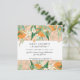 La couleur arrière - plan de l'abricot de pêche douce peut être changée et est mélangée avec l'aquarelle d'oranges Cutie, fleurs, fruits de bébé, agrumes et feuilles d'eucalyptus vert pour "A Little Cutie Oranges in Eucalyptus Baby shower Invitation. Reverse side a typographie texte, "un petit mignon est sur le chemin", et un autre mignon orange, feuillage feuille et le nom de votre bébé si vous l'avez choisi ou simplement effacer le texte si vous ne l'avez pas fait. Oeuvre d'Audrey Jeanne Roberts, artiste et designer de renommée internationale, copyright.