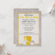 Conception adorable et neutre pour une fête prénatale pour la future maman amoureuse de la plage ! Le design présente un fond de grains de sable. Au centre, un rectangle décoloré blanc avec une bordure jaune. En bas du rectangle se trouve une pelle et un seau jaunes. À côté du seau se trouve un coquillage blanc. Il y a un texte en gris foncé et en jaune qui dit "Bienvenue Petit Bébé de la Plage". En dessous, un texte personnalisable en gris foncé où vous pouvez ajouter le nom de la future maman et les détails de la fête prénatale. Conception amusante et sur le thème de la plage pour une fête prénatale pour ceux qui vivent près de la plage ou qui aiment simplement la plage !