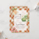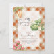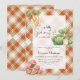 Cette invitation personnalisée de baby shower à carreaux orange présente du chou, des carottes et de la pastèque avec la phrase une petite pousse, créant un design chaud et cosy inspiré de la ferme. Les tons orange apportent une atmosphère automnale saisonnière.