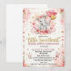 Organisez une fête prénatale de rêve avec cette charmante invitation "Petit cœur", conçue spécialement pour la célébration d'une petite fille de la Saint-Valentin. Cette carte présente un adorable éléphant bébé à l'aquarelle tenant des ballons en forme de cœur, niché parmi de douces pivoines roses et des étoiles dorées.
