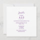 Modèle pour votre propre photo. A l'avant : Superposition du texte blanc : Bonjour 100 ! Le texte est écrit avec un script de style moderne écrit à la main. Dos : arrière - plan blanc et lettres violettes foncées. Modèles pour un nom et les détails de la fête.