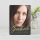 Faire-part gris et noir élégant de photo d'obtention du diplôme de filets avec le recouvrement manuscrit de manuscrit de feuille d'or élégante de faux. De fête de remise des diplômes d'invitation des textes dos facultatif dessus. Note : Montré sur la taille 5x7 avec l'option découpée avec des matrices. Veuillez cliquer sur la "personnaliser" pour changer la taille, la forme ou les styles de police.