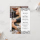 Double face 2 en 1 faire-part de mariage photo en blanc avec des polices noires élégantes et les contours en dentelle des arrangements de fleurs dessinés à la main avec le souffle des roses et bébé. Ajoutez une photo à l'avant de la faire-part de mariage florale, et une autre photo à l'arrière où vous pouvez également ajouter des détails.
