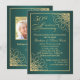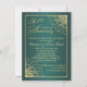 Invitation 50e anniversaire de mariage avec ornement tourbillonnant doré sur fond dégradé sarcelle. Au dos - vous pouvez ajouter votre propre photo et des informations personnelles.