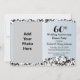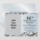 Cette invitation pour le 60e anniversaire de mariage présente un motif damassé tourbillonnant noir en arrière-plan, une bande ondulée de couleur bleu clair (diamant) au centre et un cadre photo personnalisable. Le texte personnalisable sur le recto et le verso vous permet d'ajouter les détails de votre invitation.