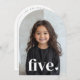 Célébrez la journée spéciale de votre enfant avec cette invitation en arc de style boho-moderne ! Avec sa photo et son âge en typographie audacieuse sur le devant, un petit coeur et des détails minimalistes élégants sur le dos, ce design est parfait pour une soirée chic et mémorable.
