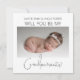 Demandez à vos meilleurs amis, soeurs, frères ou cousins d'être les parrains de votre bébé avec ce magnifique minimaliste 2 face carte photo, Avec une photo mignonne de votre bébé, posant la question et au dos une autre photo avec un message modèle, les styles de police et la couleur arrière - plan peuvent être changés en cliquant sur le lien customiser plus loin après la personnalisation.