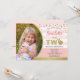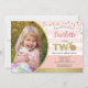 Invitation photo élégante thème lapin rose et or pour l'anniversaire 2 ans de votre fille.