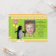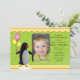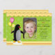 Un adorable design unisex avec un manchot en ballons. Le arrière - plan à points polka vert est orné d'un auvent jaune/orange, recouvert de pétoncles et de la photo de l'enfant d'anniversaire.La carte est facile à customiser avec votre libellé, police, couleur de police et choix de six types de papier.