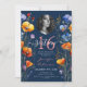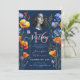 Invitation PHOTO Aquarelle Fleurs sauvages doux 16 bleu marin