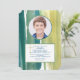 Une invitation photo moderne avec des touches de pinceau aquarelle dans des tons de bleu, de vert et de jaune. La croix peut être déplacée à l'endroit souhaité, agrandie ou réduite ( + - ), ou supprimée. (<a href='https://www.freepik.com/photos/people'>Photo de personnes créée par Racool_studio - www.freepik.com</a>). (<a href="https://www.vecteezy.com/free-vector/wallpaper">Vecteurs de papier peint par Vecteezy</a>). La carte est facile à personnaliser avec votre libellé, police, couleur de police, options de forme de papier et choix parmi six types de papier. Vous ne trouvez pas exactement ce que vous cherchez ? Tous nos produits peuvent être conçus sur mesure pour répondre à vos besoins sans frais supplémentaires. Contactez-nous simplement à heartfelthelper@gmail.com. Produits coordonnés disponibles : il suffit de nous demander !
