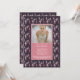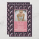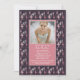Une belle invitation offrant des silhouettes de ballerine dans deux nuances de rose et de gris clair contre un arrière - plan ébène aux bordures de zigzag carré. Vos sentiments s'insèrent sous la fenêtre photo ou écrivez simplement une date de nom à l'avant et continuez votre message sur le grand panneau arrière.