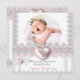 Invitation Photo Baptême Pink Silver Heart Cross Girl Pearl 2