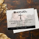 Invitez vos amis et votre famille à célébrer la dédicace spéciale de votre enfant avec ces invitations photo bébé modernes en noir et blanc. Le design minimaliste présente une simple croix avec le nom de votre fils/fille, accompagné des détails de votre cérémonie et de votre célébration. Cartes de dédicace bébé. Superposition d'un filtre blanc pour faire disparaître la photo en arrière-plan.