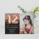 Photo 12th Birthday Invitation Black Rose Gold Parties scintillant Elégant noir et rose or 12th anniversaire invitation pour une fille de 10 ans avec écriture de script moderne et des ballons de papier amusant.