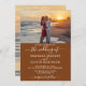 Elégant script photo faire-part de mariage boho brun avec deux photos, simple noir sur blanc.