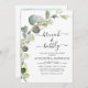 Brunch et Bubbly Eucalyptus Verdure Aquarelle botanique Succulente Emerald Green Fête des mariées de mariage de printemps Photo Invitations sur arrière - plan blanc - comprend belle et élégante typographie script avec feuilles botaniques modernes et verdure pour la fête spéciale Mariée à être.