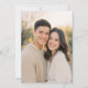 Cette invitation de mariage présente un design chaleureux et intime avec deux personnes debout l'une près de l'autre, souriant dans un cadre extérieur lors du coucher ou du lever du soleil. La palette de couleurs est dominée par des tons terreux de beige et de crème, complétée par les teintes dorées de la lumière naturelle du soleil, créant une ambiance douce et invitante. Le style photographique capture des détails réalistes, mettant l'accent sur l'émotion et la connexion authentiques entre les sujets. La tenue décontractée ajoute à l'atmosphère détendue, ce qui la rend parfaite pour les couples recherchant une esthétique sincère et accessible pour leur jour spécial.