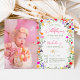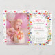 Ajoutez une touche d'élégance bohème à votre bébé jalon, premier anniversaire avec notre Moderne Chic Boho Bright Elegant Colorful Fleurs sauvages photo 1er anniversaire Invitation sur arrière - plan blanc. Avec ses tons roses, rouges, verts et violets, ses fleurs botaniques inspirées des jardins rustiques fleur sauvage et aquarelles, sa subtile verdure et sa typographie boho moderne.