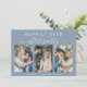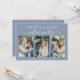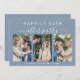 Élégant étage bleu poussiéreux ou faire-part mariage privée et accueil. L'avant présente un collage photo 3 et "Happily Ever After Party" en simple typographie blanche et un script blanc élégant avec des swashes, vos prénoms unis par un coeur et votre date de mariage ou de réception. Au contraire, personnalisez votre faire-part et votre invitation et ajoutez vos noms dans un script de type signature.