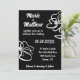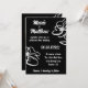 Photo Mariage florale classique et moderne Invitation blanc écrit sur noir gothique.