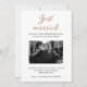 Cette invitation moderne et élégante pour un brunch post-mariage en noir et blanc présente votre photo de mariage personnelle préférée, avec une écriture manuscrite en faux rose gold classique et fantaisiste qui dit "juste mariés" pour un look élégant que vous aimerez.