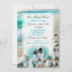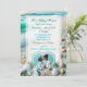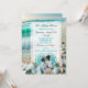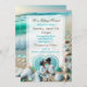 Invitations de mariage avec un joli verre de mer bleu et turquoise sur une plage de sable avec des vagues de l'océan. Téléchargez votre photo dans la zone de personnalisation.