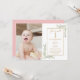 Une invitation photo d'anniversaire 1 an stylée avec un fond rose bébé au verso. Conçue par Thisisnotme©