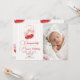 Ajoutez votre photo préférée à cette invitation d'anniversaire "Petite Cerise". Comprend le charmant design de cerise rouge et de nœud rose, ce qui en fait un souvenir parfait pour le premier événement marquant d'une fille.