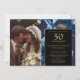 Invitation Photo d'anniversaire de 50 ans à fleurs bleues noi