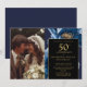 Cette élégante invitation de mariage de 50 ans à fleurs bleues noires et or peut être personnalisée avec vos informations en typographie moderne et une photo spéciale. Conçue par Thisisnotme©