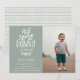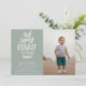 Jolie "un lapin" invitation photo de fête d'anniversaire en vert sauge. Typographie blanche avec accent d'oreille lapin et support motif de style tissé à la main.