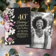Invitation Photo de 40 ans d'anniversaire floral élégant or