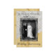 Fond de satin doré et garniture de dentelle blanche avec cadre élégant noir et argent avec photo de modèle. Modèles créés spécialement pour vous.