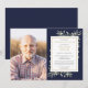 Une invitation de souvenir de célébration de vie en aquarelle personnalisée botanique bleu marine élégante. Conçue par Thisisnotme©